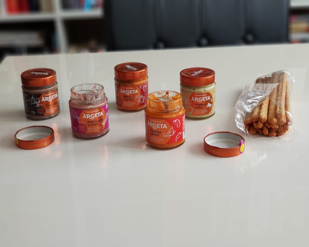Čeprav rad poizkušam nove stvari, pa so bili novi Argetini zelenjavni namazi tudi zame precejšen izziv. Okusi, kot so rdeča pesa in hren, črne olive, humus natur in podobno so stvari, ki so mi precej tuje. Ampak sem jih v luči raznovrstnosti preizkusil in moram priznati, da niso slabi, sploh ne.