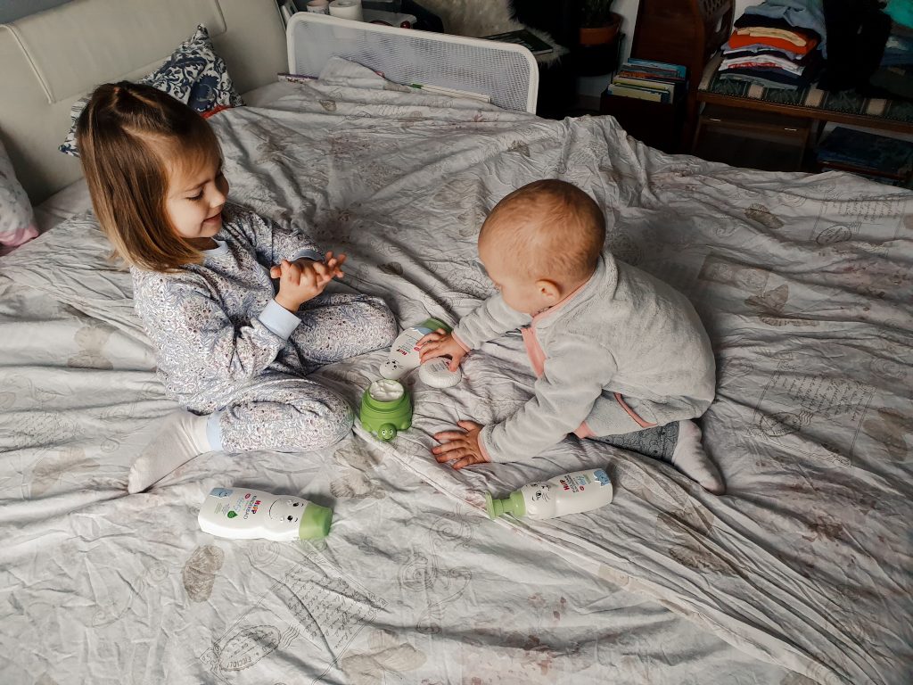 Ko gre pa za nego otrok, se pa ne petljam. Tjaša mi na listek napiše, kaj naj kupim in to je to. Razlog za to je povsem očitem: na hitro pogledam, kako Tjaša skrbi zase in kako jaz in takoj vidim, da je bolje, da otroci prevzamejo njene navade. Če si postrižem nohte in umijem lase, je to zame že negovalni dan. Medtem ko se Višnja zna že pri svojih štirih letih nalipšati. Včasih hoče še mene, ampak na srečo sem danes še hitrejši od nje.