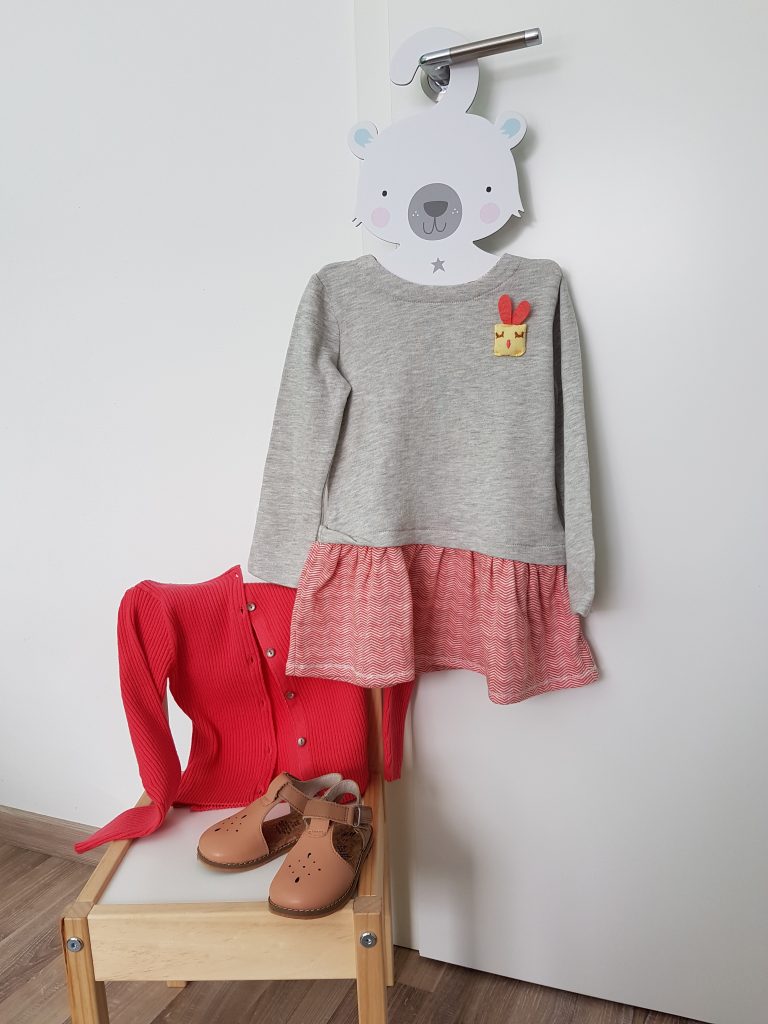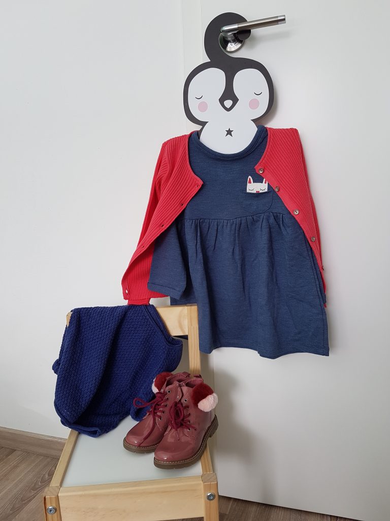 Oblekica Mango, pulover Okaidi, čevlji Ciciban