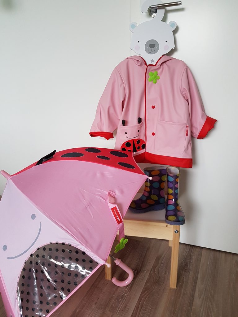 Tako, mi smo pripravljeni na jesen in tudi v vrtec se je lažje odpraviti v novih pisanih škorenjčkih, pelerini in s prvim čisto svojim dežnikom 🙂